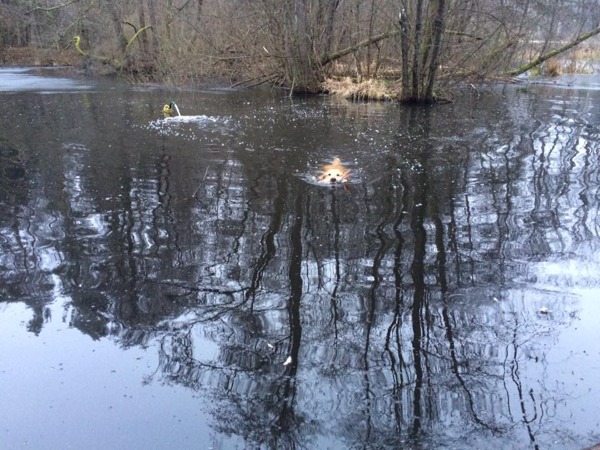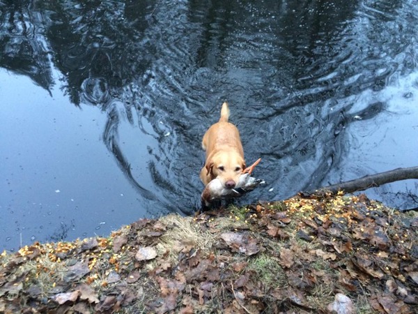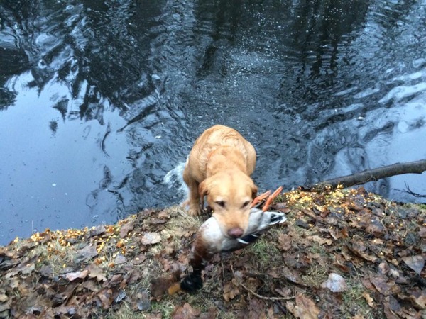 Wieder einmal zeigt Henry seine ausgeprägten Retrievereigenschaften! Entenspur aufnehmen – Ente finden – Ente bringen. Wir sincd stolz auf unseren Buben!