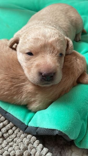 | Alle Welpen sind laut Erbgang frei auf: prcd-PRA, CNM, HNPK, SD2, EIC Clear | ||