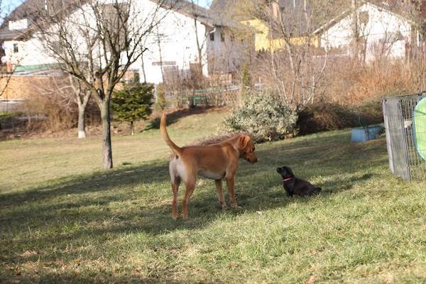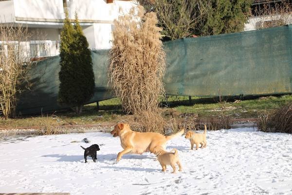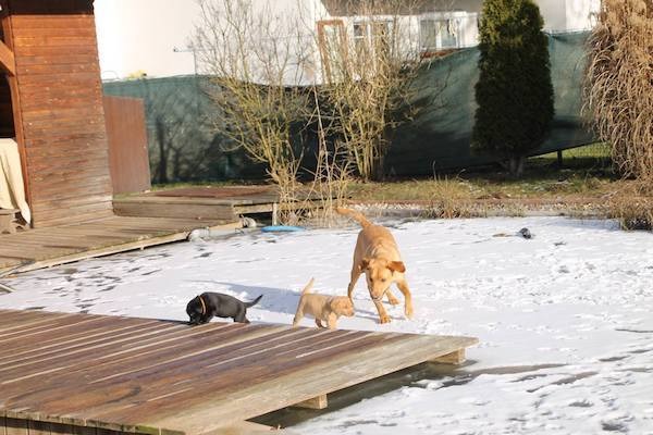![]() | Unsere Mäuse durften bei strahlenden Sonnenschein das erste Mal die große weite Welt unseres Gartens erkunden. Eine Spielstunde mit Mama April, Onkel Albin und Onkel Justin durfte bei diesem Ausflug natürlich nicht zu kurz kommen. Sie hatten eine richtige Gaude und alles musste zuerst mit der Nase erkundet werden. Danach war schlafen angesagt. |