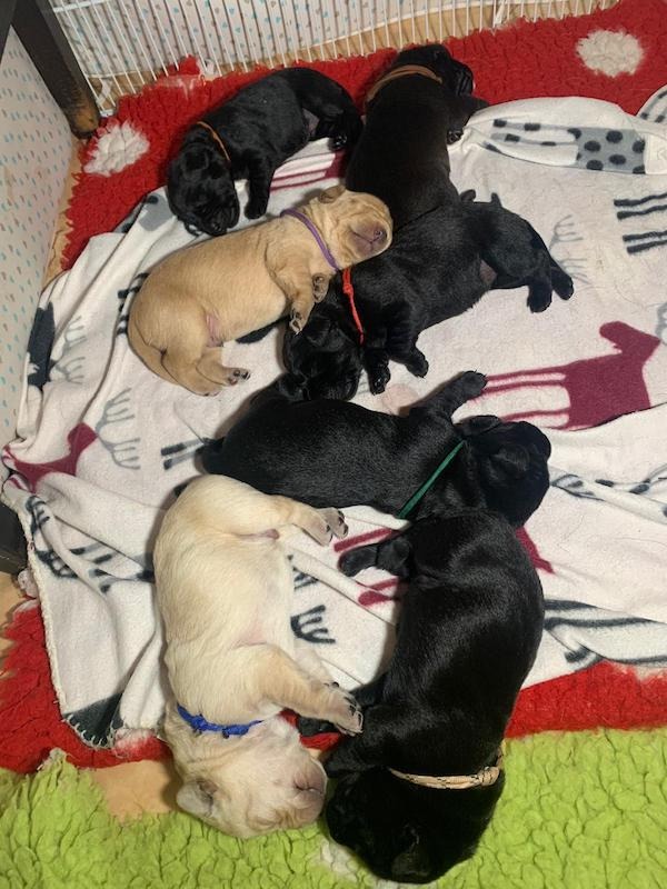 Gut ding braucht weile!Charly hat am 01.11.2020 insgesamt 7 wunderschöne gesunde Welpen zur Welt gebracht! 2 schwarze Hündinnen, 3 schwarze Rüden und 2 gelbe Rüden.Bin richtig stolz auf sie und überglücklich.